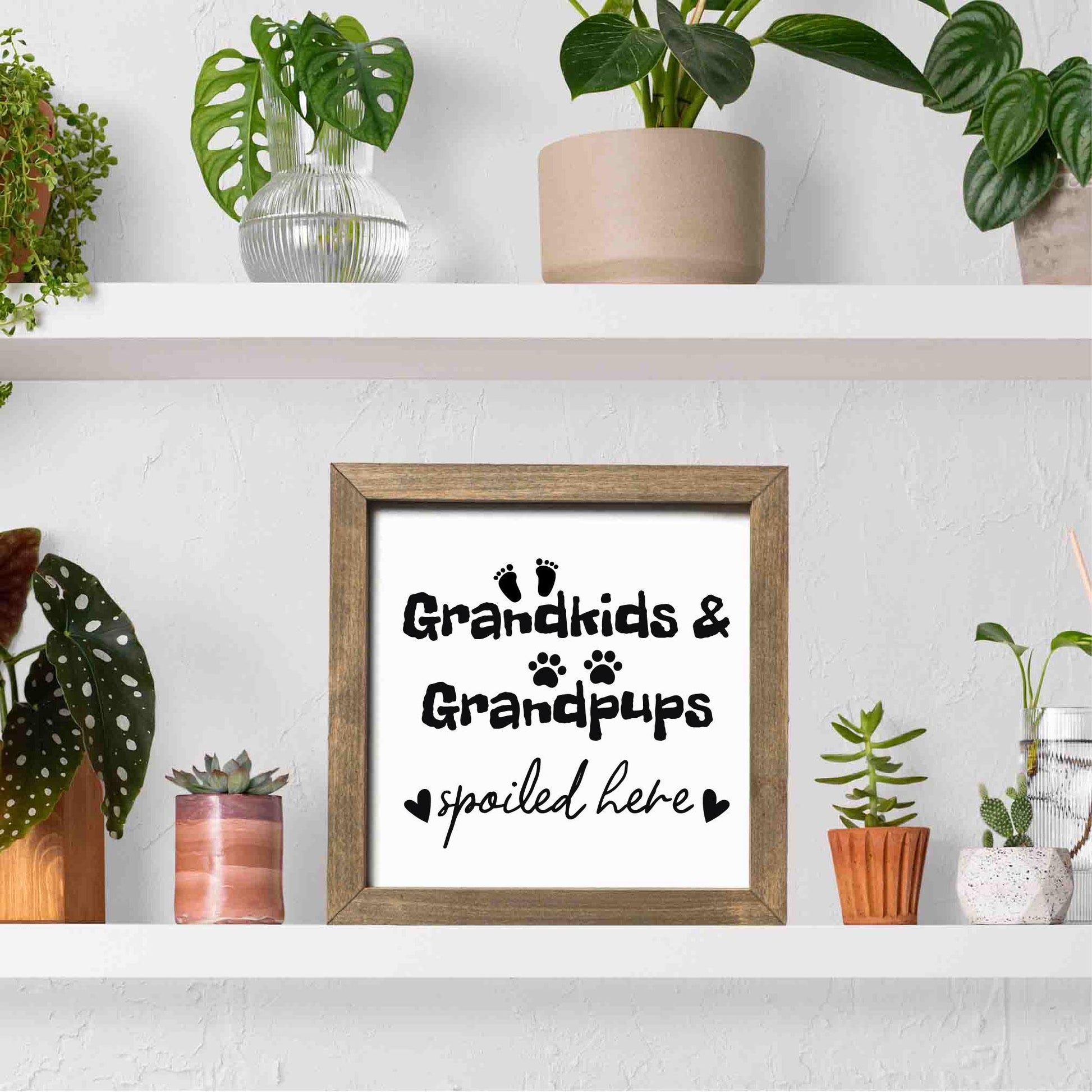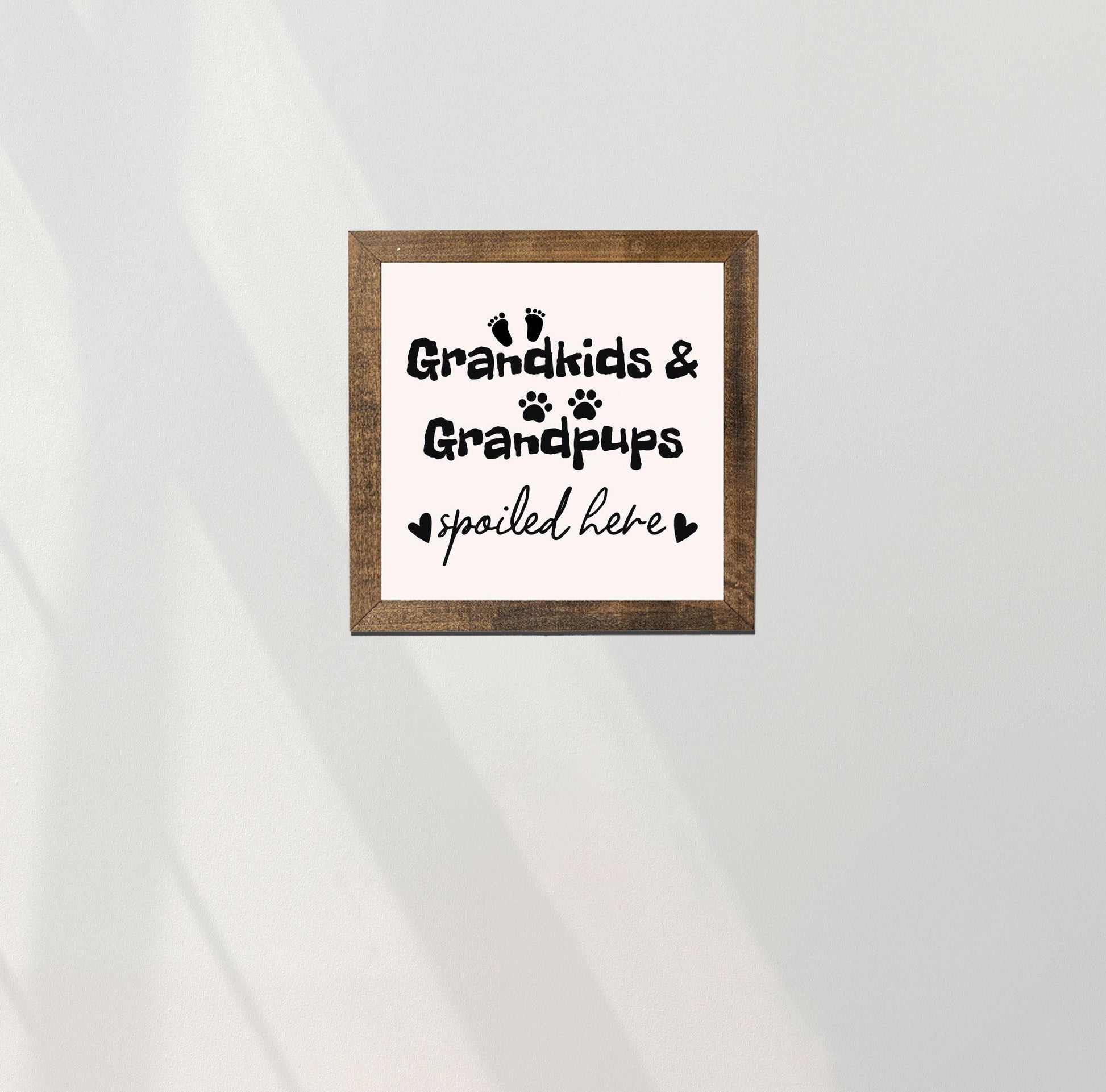 Grandma & Grandpa's House Welcome Sign, Grandkids Grandpups spoiled here, Grandparents Home Sign, Gift, Square Wooden Decor