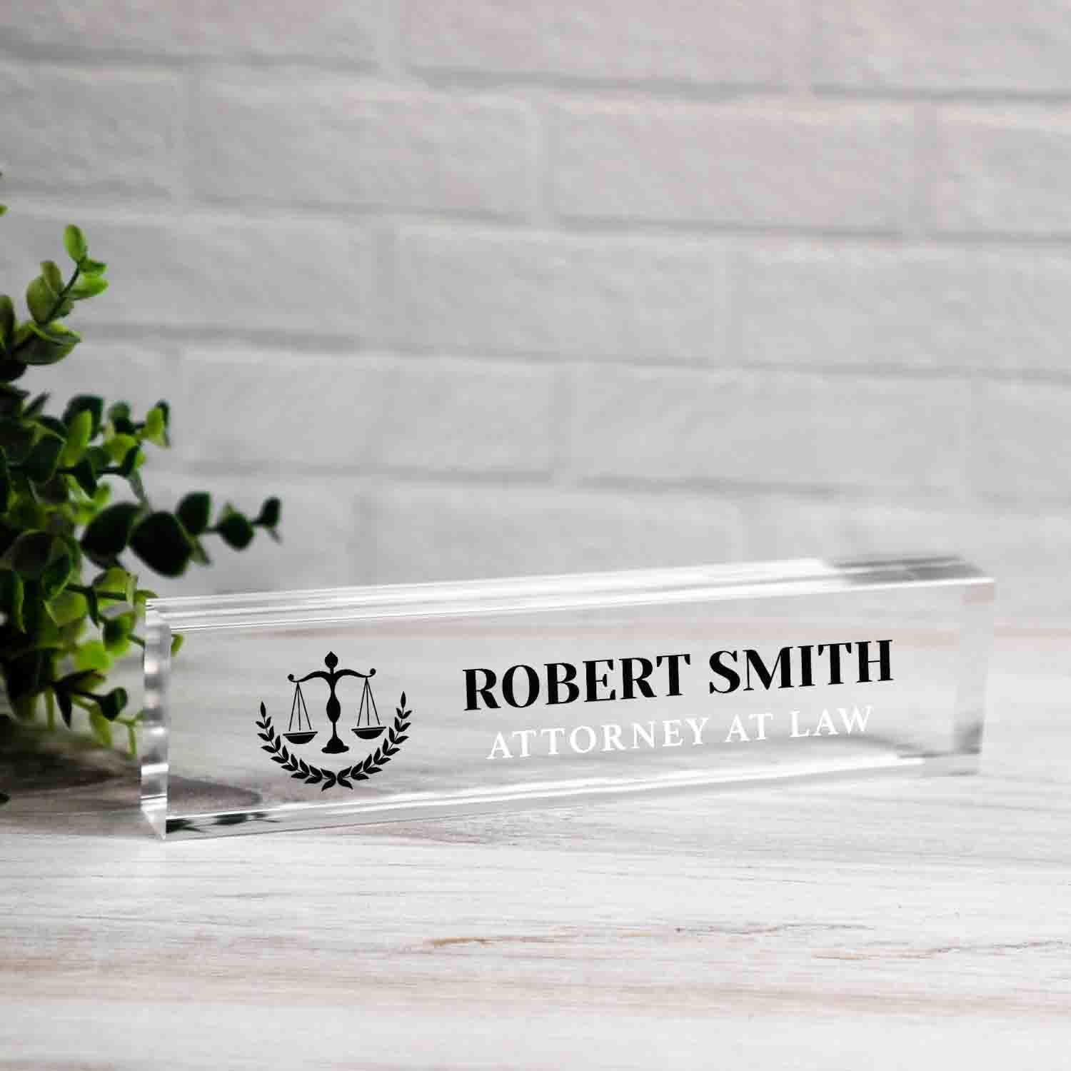 Personalized Attorney Nameplate, Custom Paralegal Desk Name Wedge, Clear JD Judge Law Firm Office Name Bar, Lawyer Desk Name Plate