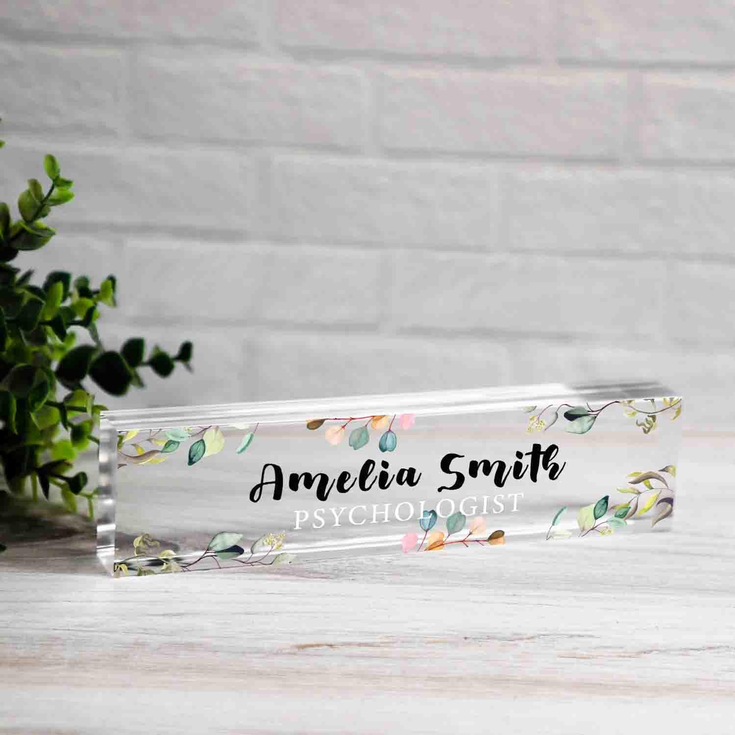 Personalized Nameplate for Psychologist or any title, Custom Name Wedge, Desk Sign, Office Job Title Desk Bar Clear Name Plate