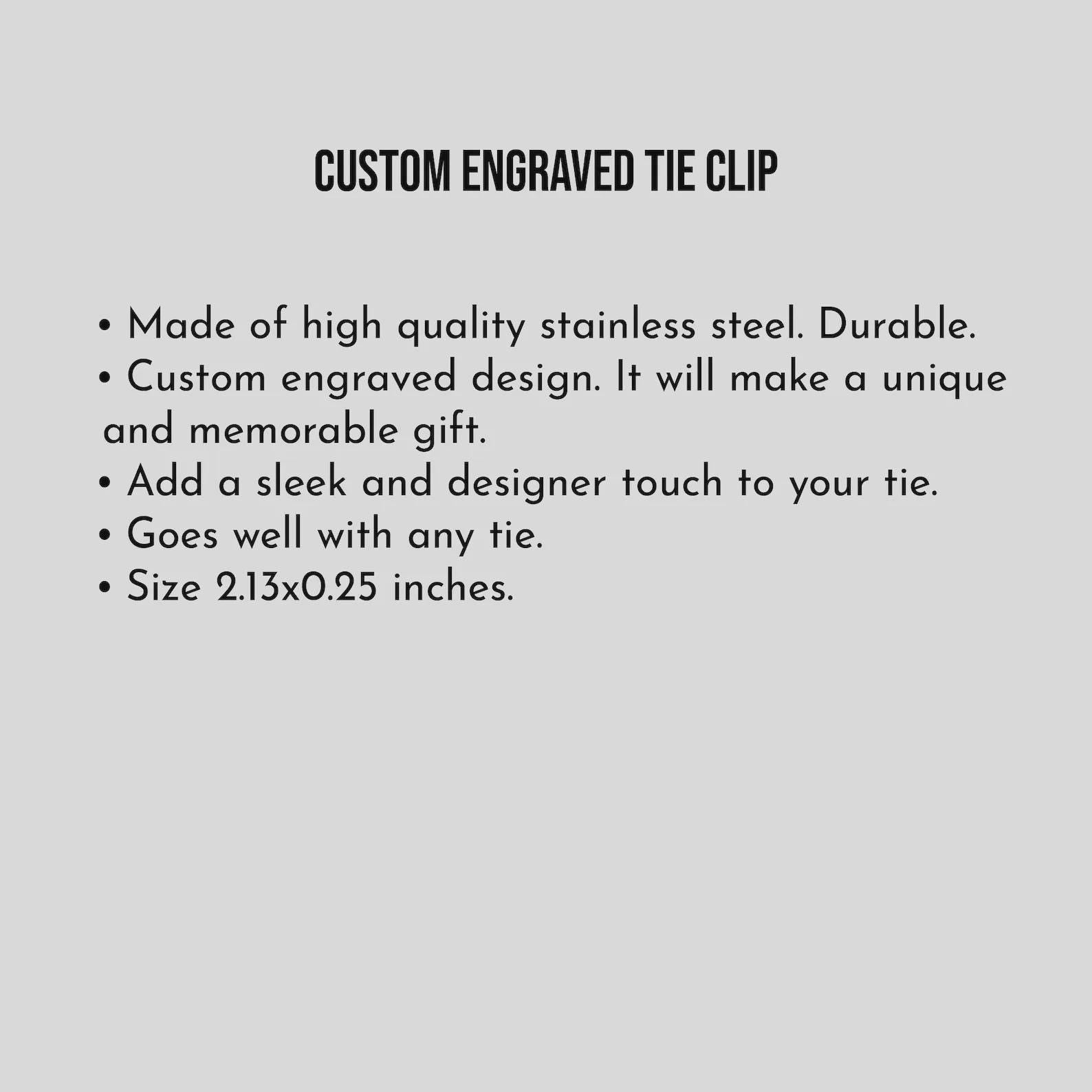 Personalize this Tie Clip with your message/text. Made from stainless steel. Simple and elegant.