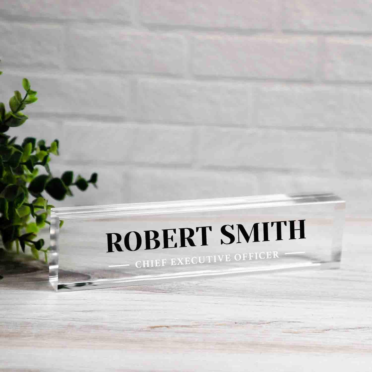 Personalized Office Nameplate, Custom Business Name Wedge, Clear Firm Office Desk Sign, Promotion Gift, Work Job Title Desk Bar Name Plate