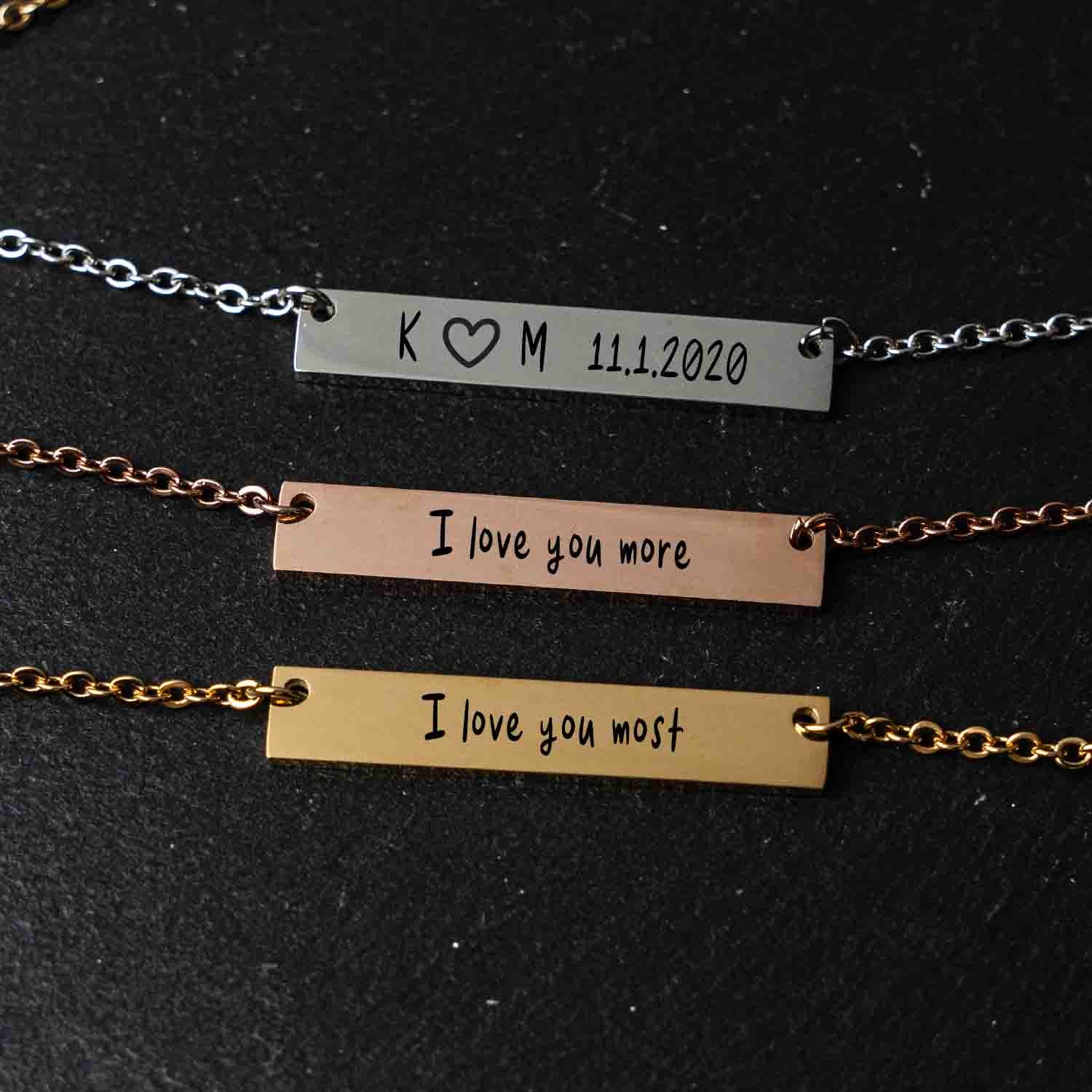 Personalized Simple Necklace for Valentines Day Anniversary, New Couple Wedding Gift Bar Necklace, Custom Engraved Dainty Necklace