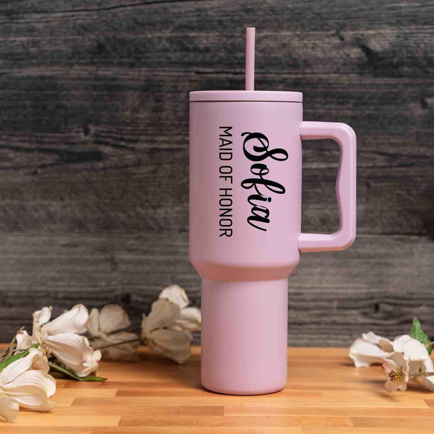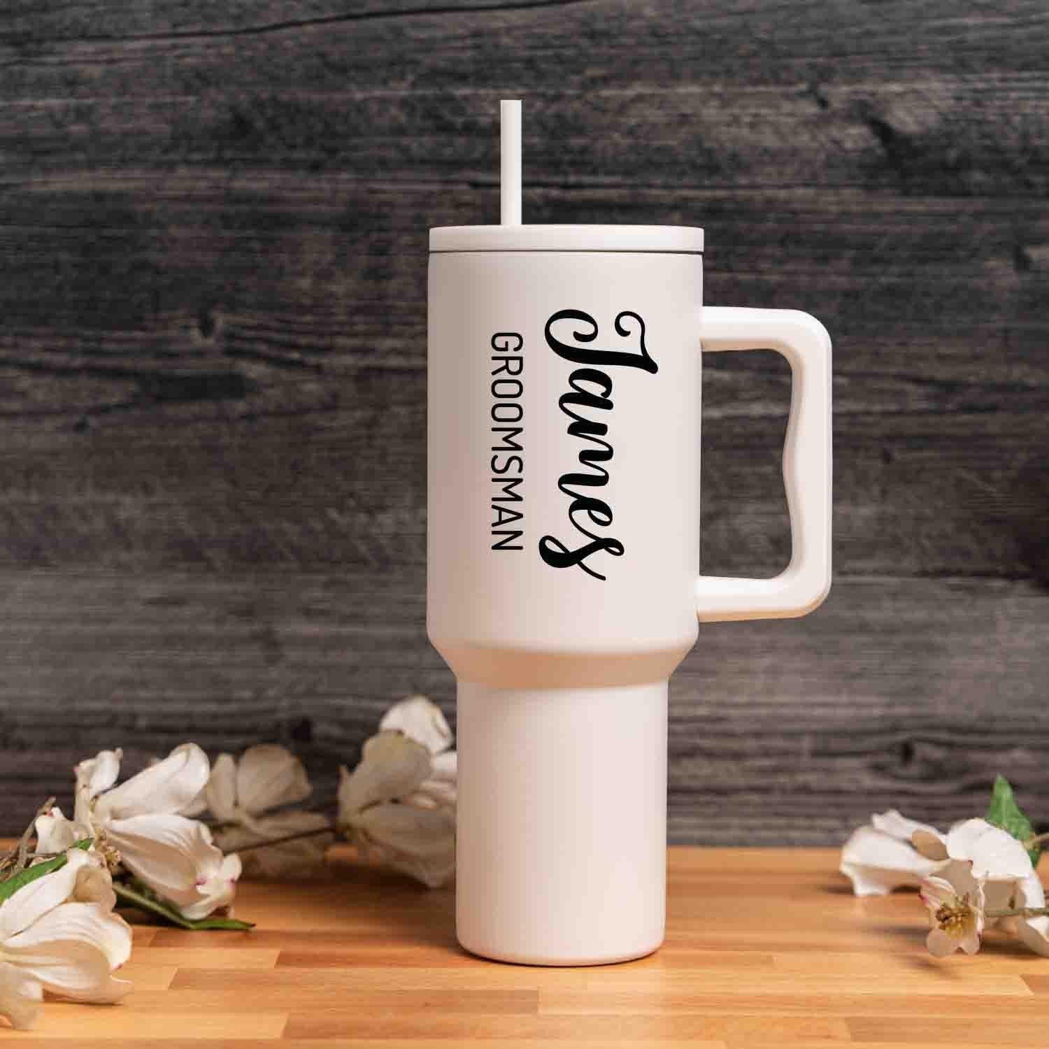 Personalized tumbler with with Lid and Straw, custom wedding name title, 40oz Stainless Steel Tumbler, Custom groomsman proposal gift