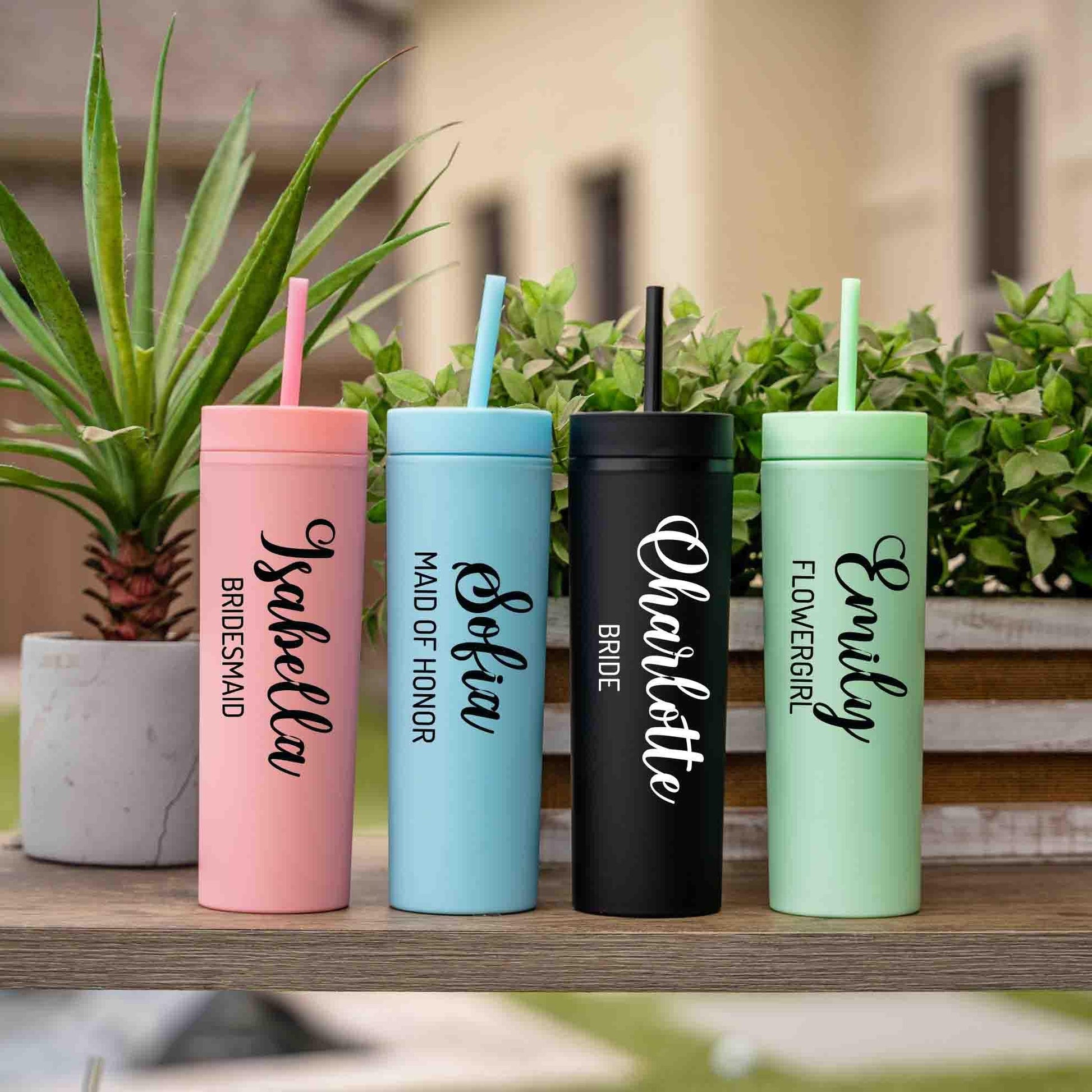Personalized Wedding name title tumbler with Lid and Straw, Acrylic Tumbler, Custom Skinny Cup for Bride, Bridesmaids, Maid of Honor