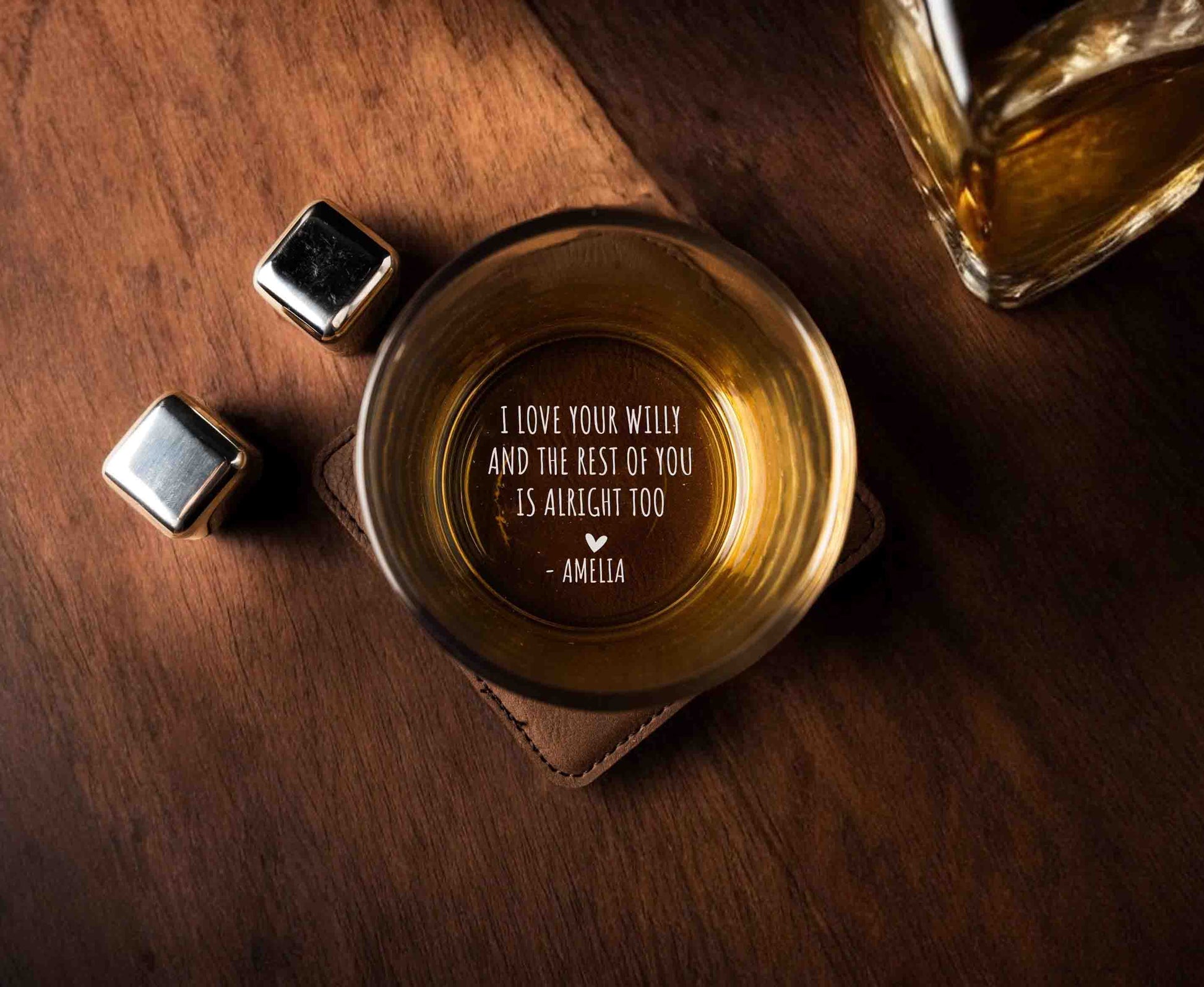 Personalized Whiskey Glasses with initial name and bottom personal message