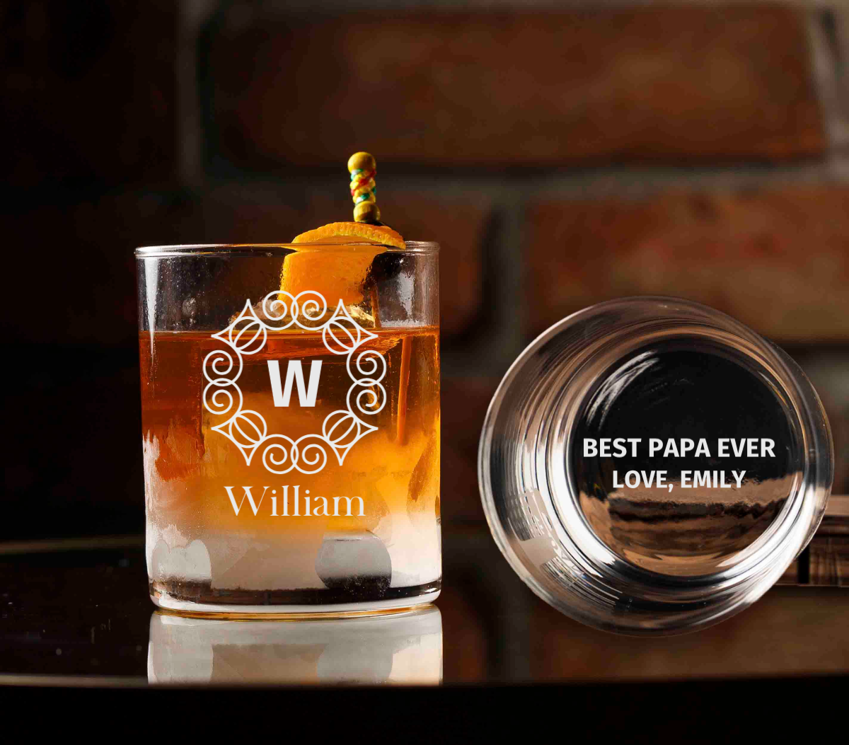 Personalized Whiskey Glasses with name and message on front and bottom for Grandpa Dad or anyone, Proposal Gift Ideas, Custom Glasses and Party Favor Gift